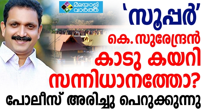 സുരേന്ദ്രന്റെ നീക്കം ഇങ്ങനെ പോകുമ്പോള് സ്ത്രീ പ്രവേശന വിവാദത്തിന്റെ പശ്ചാത്തലത്തില് പൊലീസ് ശബരിമലയുടേയും പരിസര പ്രദേശത്തിന്റേയും സുരക്ഷ ഏറ്റെടുത്തു കഴിഞ്ഞു.