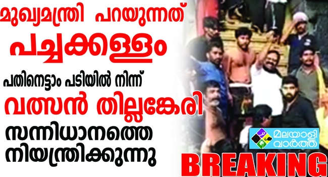 മുഖ്യമന്ത്രി പറയുന്നത് പച്ചക്കള്ളം എന്നു തെളിയിക്കുന്ന ദൃശ്യങ്ങള് ഞങ്ങള് പുറത്തു വിടുന്നു. പോലീസിനെ നോക്കുകുത്തിയാക്കി ആര്എസ്എസിന്റെ കാര്യകാരി സദസ്യന് വത്സന് തില്ലങ്കേരി പതിനെട്ടാം പടിയില് നിന്ന് ഭക്തര്ക്ക് നേരിട്ടു നിര്ദ്ദേശം നല്കുന്ന ദൃശ്യങ്ങളാണിത്. സന്നിധാനം പൂര്ണ്ണമായും ആര്എസ്എസ് നിയന്ത്രണത്തില് തന്നെയെന്ന് അടിവരയിടുന്ന റിപ്പോര്ട്ടാണ് ഞങ്ങള് പുറത്തു വിടുന്നത്.