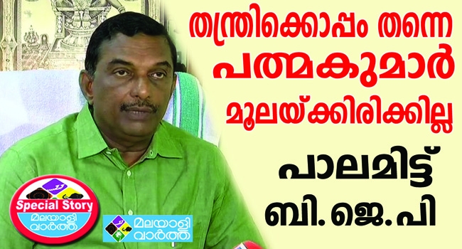 ശബരിമലയില് തന്ത്രിയെ ഒതുക്കാന് സര്ക്കാര് നീക്കം ശക്തമാക്കിയതോടെ മുഖ്യമന്ത്രിയുമായി ഇടഞ്ഞ് നില്ക്കുന്ന ദേവസ്വം ബോര്ഡ് പ്രസിഡന്റ് എ. പത്മകുമാറിനെ രണ്ട് കയ്യുംനീട്ടി സ്വീകരിക്കാന് ബി.ജെ.പി ഒരുങ്ങി