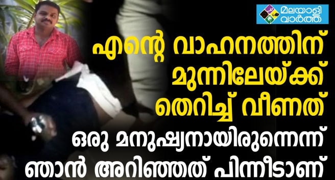 അപ്പോ തന്നെ ഇറങ്ങിനോക്കി, പുള്ളിക്കാരന് എങ്ങനെയുണ്ടെന്ന്. ശ്വാസമുണ്ടായിരുന്നു. വണ്ടി റോഡിന്റെ വശത്തേക്ക് ഒതുക്കിനിര്ത്തിയശേഷം, അടുത്തുനിന്നവരോട് ആംബുലന്സ് വിളിക്കണമെന്ന് പറഞ്ഞു. അതിനിടയില് ഒരു ചേട്ടന് ആംബുലന്സ് വിളിച്ചു. അവരോട് ചോദിച്ചപ്പോള് ആംബുലന്സ് ഇപ്പോ എത്തുമെന്ന് പറഞ്ഞു. അല്പനേരത്തിനുള്ളില് പൊലീസ് വന്നു. അതിനിടയില് വലിയൊരു ആള്ക്കൂട്ടമായി. അവര് അവിടെനിന്ന് നോക്കി, എന്താ സംഭവമെന്ന്. പൊലീസുകാര് അടുത്തുവന്ന് ആരാണ് വണ്ടി ഓടിച്ചതെന്ന് ചോദിച്ചു. മറ്റൊരാള് വന്നു എന്റെ കൈയില്നിന്ന് താക്കോല് വാങ്ങി. കുറച്ചുകഴിഞ്ഞപ്പോള് ആംബുലന്സ് വന്ന്, വണ്ടിയിടിച്ചുകിടന്നയാളെ കയറ്റിക്കൊണ്ടുപോയി’.