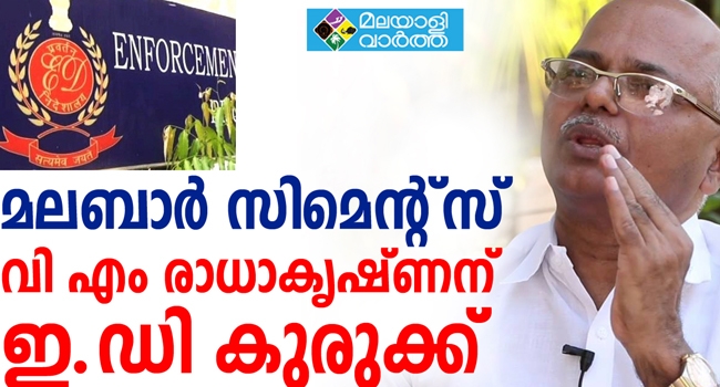 മലബാർ സിമെൻറ്സ് അഴിമതി കേസുമായി ബന്ധപ്പെട്ട് വി.എം രാധാകൃഷ്ണന്റെ വീടും ഇരുപത് ആസ്തി വകകളും അടങ്ങിയ 23 കോടിയുടെ സ്വത്തുക്കൾ കണ്ടുക്കെട്ടി;കടുത്ത നടപടിയുമായി എന്ഫോഴ്സ്മെന്റ്; ഉദ്യോഗസ്ഥര് പ്രതികളായ കേസ് കൂടി എന്ഫോഴ്സ്മെന്റിന്റെ പരിഗണനയിൽ