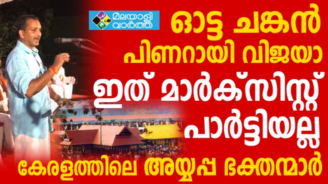 'കേരളത്തിലെ പതിനായിരക്കണക്കിന് അയ്യപ്പ ഭക്തർ പിണറായി വിജയൻറെ നിർദ്ദേശം അംഗീകരിക്കാൻ പോകുന്നില്ല. ആരെങ്കിലും ഇരുമുടികെട്ട് തലയിൽ എടുത്തുകഴിഞ്ഞാൽ പിന്നെ ലക്ഷ്യം ശബരിമലയാണ്. അതിനിടയിൽ മറ്റെങ്ങും തിരിഞ്ഞു നോക്കില്ല. ഇരുമുടി കെട്ട് തലയിൽ എടുത്തതിനു ശേഷം പോലീസ് സ്റ്റേഷനിൽ പോയി കപ്പ് വാങ്ങണമെന്ന് പറഞ്ഞാൽ അത് പള്ളിയിൽ പോയി പറഞ്ഞാൽ മതി പിണറായി വിജയാ. ഞങ്ങളെ നിങ്ങൾ നോക്കണ്ട. നിങ്ങളുടെ ഏത് മാർക്കട മുഷ്ടിയെയും ഞങ്ങൾ പരാജയപെടുത്തുക തന്നെ ചെയ്യും. തുലാമാസ പൂജയ്ക്ക് ഞങ്ങളത് കാണിച്ച് കൊടുത്തു. ചിത്തിര ആട്ട വിശേഷത്തിനും ഞങ്ങൾ അത് കാണിച്ചുകൊടുത്തു. പിണറായി വിജയൻ പറയുന്നത് അയാൾക്ക് രണ്ട് ചങ്കാണെന്നാണ്. ചിത്തിര ആട്ട വിശേഷം കഴിഞ്ഞപ്പോൾ അയാൾക്ക് രണ്ടുചെങ്കല്ല ഒരു ചങ്ക് പോലുമില്ല വെറുമൊരു ഓട്ട ചങ്കാണ് പിണറായി വിജയൻ എന്ന് മനസിലായി. അയ്യപ്പ ഭക്തന്മാരെ പേടിപ്പിച്ചാൽ അവർ പിന്മാറുമെന്നാണ് പിണറായി വിജയൻ കരുതുന്നത്. പിണറായി വിജയാ ഇത് മാർക്സിസ്റ്റ് അണികളല്ല കേരളത്തിലെ അയ്യപ്പഭക്തന്മാർ. ജയിക്കാൻ തന്നെ തയാറായാണ് ഈ യുദ്ധത്തിന് ഇറങ്ങിയിരിക്കുന്നത്.' എന്ന് അദ്ദേഹം പറഞ്ഞു.