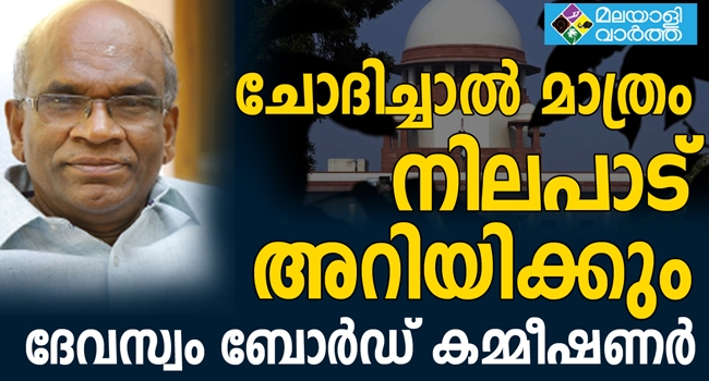 ശബരിമല യുവതീ പ്രവേശനത്തിൽ സുപ്രീംകോടതി ആവശ്യപ്പെട്ടാല് നിലപാട് അറിയിക്കുമെന്ന് ദേവസ്വം ബോര്ഡ് കമ്മീഷണര്