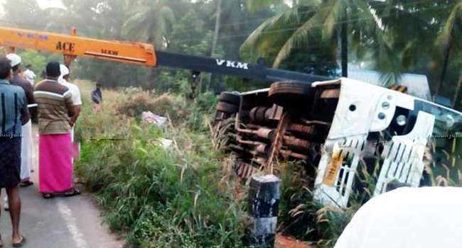 ബസില് 36 പേര് ഉണ്ടായിരുന്നു. എതിരെ വരികയായിരുന്ന ലോറിക്ക് സൈഡ് കൊടുക്കാന് ഇടതു വശത്തേക്ക് വെട്ടിച്ചപ്പോള് നിയന്ത്രണം വിട്ട് പത്തടി താഴ്ചയിലേക്ക് മറിയുകയായിരുന്നു. വളാഞ്ചേരി പൊലീസ് സ്ഥലത്തെത്തി.