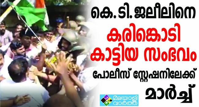കെ.ടി ജലീലിനെതിരെ കരിങ്കൊടി കാട്ടിയ സംഭവം; ചങ്ങരംകുളം പോലീസ് സ്റ്റേഷനിലേക്ക് നടത്തിയ പ്രതിഷേധ മാർച്ചിനിടെ സംഘർഷം