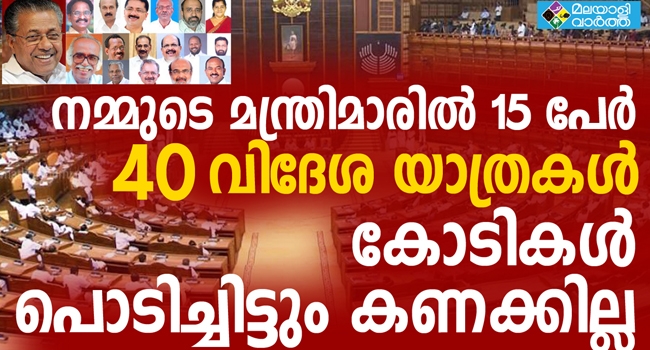 എൽ ഡി എഫ് സർക്കാർ അധികാരത്തിലേറിയ ശേഷം 15 മന്ത്രിമാർ നടത്തിയ 40 വിദേശയാത്രകളിൽ വിമാനടിക്കറ്റിന്റെ കണക്കുകൾ സമർപ്പിച്ചത് വെറും 5 മന്ത്രിമാർ. 11 ലക്ഷം രൂപയുടെ യാത്രാ ബില്ലുകളാണ് ഇവർ നൽകിയിരിക്കുന്നത് . പല രാജ്യങ്ങളിലേക്കായി മന്ത്രിമാർ നടത്തിയ 6 യാത്രകളുടെ ബില്ലുകളാണ് റീഇംബേഴ്സ് ചെയ്യാൻ സമർപ്പിച്ചതെന്ന് പൊതുഭരണ വകുപ്പ് നൽകിയ വിവരാവകാശ രേഖ പറയുന്നു.