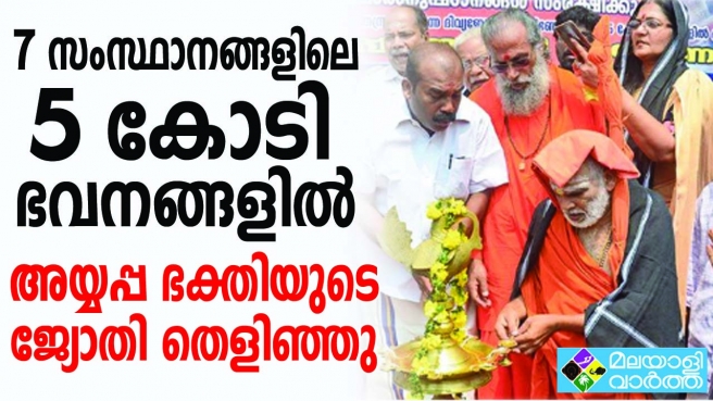 7 സംസ്ഥാനങ്ങളിലെ 5 കോടി ഭവനങ്ങളിൽ അയ്യപ്പ ഭക്തിയുടെ ജ്യോതി തെളിഞ്ഞു ; ശബരിമലയിൽനിന്നു പകർന്ന അയ്യപ്പജ്യോതി പ്രയാണത്തിനു തുടക്കമായി