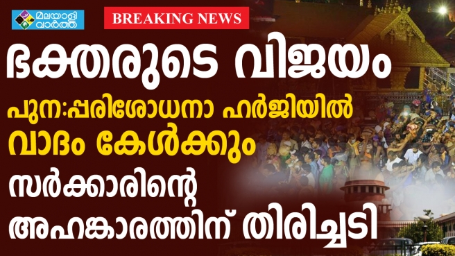 വിധിയില് പിഴവുണ്ടെന്ന വിലയിരുത്തലിന്റെ അടിസ്ഥാനത്തിലാണോ പുനഃപരിശോധന ഹര്ജികളില് വാദം കേള്ക്കാന് തീരുമാനിച്ചതെന്ന് അറിയുന്നു. ഹര്ജികളില് നോട്ടീസ് അയക്കുകയാണ് അടുത്ത നടപടി. തുറന്ന കോടതിയില് വാദത്തിനായി കേസ് ലിസ്റ്റ് ചെയ്ത് എതിര്കക്ഷികള്ക്ക് നോട്ടീസ് അയക്കും. കോടതി വിധി എന്ത് തന്നെയായാലും നടപ്പാക്കുമെന്ന് സംസ്ഥാന സര്ക്കാര് നേരത്തെ വ്യക്തമാക്കിയിരുന്നു. മണ്ഡല മകരവിളക്ക് ഉത്സവത്തിന് മുന്നോടിയായി കോടതിയില് നിന്ന് അനുകൂലമായ നടപടിയുണ്ടായത് ഭക്തലക്ഷങ്ങള്ക്ക് വലിയ ആശ്വാസമാണ്. ഒന്നരമാസത്തോളമായി യുവതീപ്രവേശനത്തെ തുടര്ന്ന് ശബരിമലയും പത്തനംതിട്ട, കോട്ടയം, ആലപ്പുഴ ജില്ലകള് സംഘര്ഷാവസ്ഥയിലാണ്.