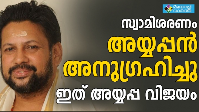 ശബരിമല വിഷയത്തില് സുപ്രീംകോടതിയില് നിന്ന് അനുകൂല നിലപാട് ഉണ്ടായത് അയ്യപ്പന്റെ അനുഗ്രഹവും ഭക്തരുടെ വിജയവുമാണെന്ന് തന്ത്രി കണ്ഠരര് രാജീവര്