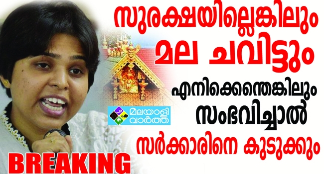 ഇല്ലെങ്കില് പിന്നെ സംഭവിക്കുന്നത്... പ്രത്യേക സുരക്ഷ ഒരുക്കില്ലെന്ന് പറഞ്ഞ സര്ക്കാരിന്റെ നിലപാടിനെതിരെ തൃപ്തി ദേശായി