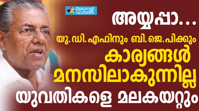 ശബരിമലയില് പ്രത്യേക ദിവസങ്ങളില് യുവതികളെ പ്രവേശിപ്പിക്കാമോ എന്ന കാര്യം തന്ത്രിയുമായും ബന്ധപ്പെട്ടവരുമായി ആലോചിച്ച് തീരുമാനിക്കും, യുവതീ പ്രവേശനത്തില് നിന്ന് പിന്മാറില്ല, വിശ്വാസികള്ക്കൊപ്പമാണ്, അവര്ക്ക് എല്ലാ സംരക്ഷണയും നല്കും- മുഖ്യമന്ത്രി വ്യക്തമാക്കി