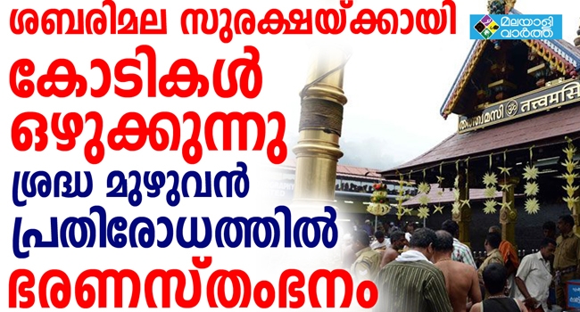 തുലാമാസ പൂജകള്ക്കും തുടര്ന്ന് ആട്ട ചിത്തിരവിളക്കിനും നട തുറന്നപ്പോള് 2800 പോലീസുകാരെയാണ് സുരക്ഷാ ക്രമീകരണങ്ങള്ക്കായി നിയോഗിച്ചിരുന്നത്. ദിനംപ്രതി കോടികള് ചെലവഴിച്ചാണ് അന്ന് ശബരിമലയില് സുരക്ഷാ ഒരുക്കിയത്. ഇപ്പോള് മണ്ഡലമകരവിളക്ക് ഉത്സവത്തിനായി നട തുറക്കുമ്പോള് ഇരട്ടിയിലധികം സേനാ വിന്യാസമാണ് പോലീസ് നടത്തുന്നത്. പ്രതിദിനം പോലീസിന്റെ സുരക്ഷാ ചെലവുകള്ക്ക് മാത്രമായി ഏതാണ്ട് 5 കോടിയിലധികം രൂപ പ്രതിദിനം വേണ്ടി വരും എന്നാണ് അനൗദ്യോഗികമായി കണക്കാക്കപ്പെടുന്നത്. 63 ദിവസം നീണ്ടു നില്ക്കുന്ന ഉത്സവകാലത്ത് ശബരിമലയിലെ സുരക്ഷക്ക് മാത്രമായി സര്ക്കാര് കോടികള് പൊടിച്ചുകളയേണ്ടിവരും എന്ന കാര്യം ഏതാണ്ട് ഉറപ്പാണ്.