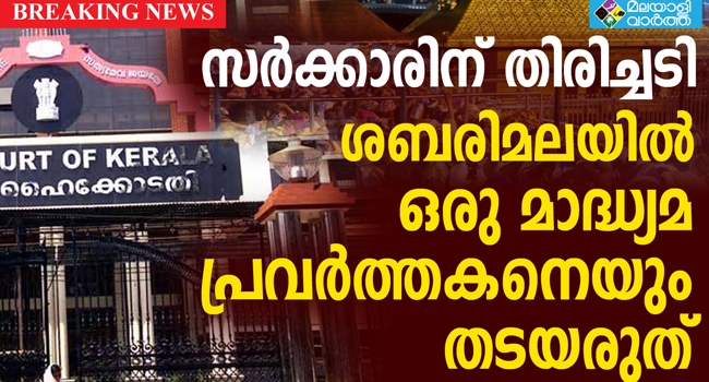 ശബരിമലയിൽ ഒരു മാധ്യമ പ്രവർത്തകനെയും തടയരുത് ..ഹൈക്കോടതി