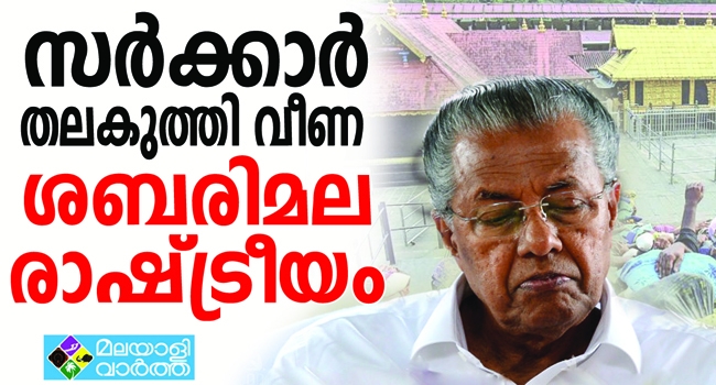 സര്ക്കാര് തലകുത്തി വീണ ശബരിമല രാഷ്ട്രീയം; തന്ത്രങ്ങളൊരുക്കി പ്രതിപക്ഷവും, ബി.ജെ.പിയുമൊരുക്കിയ കെണിയില് വീണു പിടയുമ്പോള് വെല്ലുവിളിയില് നിന്ന് കീഴടങ്ങലിലേക്ക് മുഖ്യമന്ത്രിയും