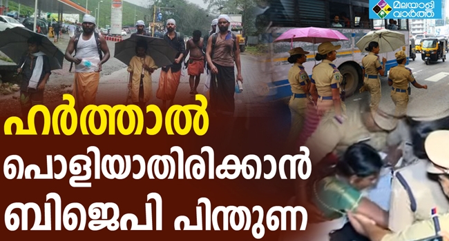 ഹിന്ദു ഐക്യവേദി നേതാവ് കെ.പി.ശശികലയെ അറസ്റ്റ് ചെയ്തതില് പ്രതിഷേധിച്ച് സംസ്ഥാന വ്യാപകമായി ഹിന്ദു ഐക്യവേദിയും ശബരിമല കര്മ്മ സമിതിയും ആഹ്വാനം ചെയ്ത ഹര്ത്താലിന് ബി.ജെ.പി പിന്തുണ പ്രഖ്യാപിച്ചു. ഇരുമുടിക്കെട്ടുമായി ദര്ശനത്തിനെത്തിയ ഹിന്ദു ഐക്യവേദി നേതാവ് കെ.പി ശശികല, ശബരിമല ആചാര സംരക്ഷണ സമിതി കണ്വീനര് പൃഥ്വിപാല്, ബി.ജെ.പി നേതാവ് പി.സുധീര് എന്നിവരെ അറസ്റ്റ് ചെയ്ത നടപടിയില് ബി.ജെ.പി പ്രതിഷേധം അറിയിച്ചു. ശബരിമലയില് പിണറായി സര്ക്കാര് ഏര്പ്പെടുത്തിയിട്ടുള്ള പൊലീസ് രാജ് അയ്യപ്പഭക്തരെയും വിശ്വാസികളെയും വെല്ലുവിളിക്കുകയാണെന്നും ബി.ജെ.പി ആരോപിച്ചു.