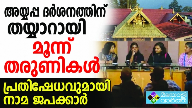 അയ്യപ്പ ദർശനത്തിന് തയ്യാറായി മൂന്ന് തരുണികൾ ; മലചവിട്ടാൻ സുരക്ഷ നൽകണമെന്ന് ആവശ്യപ്പെട്ട് സർക്കാരിനെയും പൊലീസിനെയും സമീപിച്ചിച്ചു; ശബരിമല കർമ സമിതിയുടെ നേതൃത്വത്തിൽ എറണാകുളം പ്രസ് ക്ലബിന് പുറത്ത് നാമജപ പ്രതിഷേധവുമായി നിരവധി പേർ