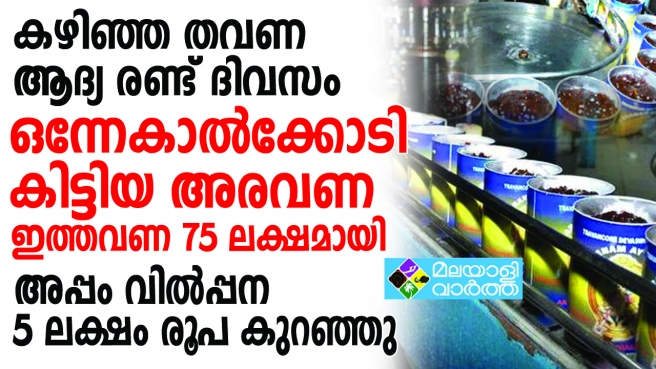 മണ്ഡലകാലം രണ്ട് ദിവസം പിന്നിട്ടപ്പോള് അപ്പം അരവണ വില്പ്പനയില് വലിയ ഇടിവ്. ദേവസ്വംബോര്ഡ് അംഗം കെ.പി ശങ്കര്ദാസ് ഇക്കാര്യം അറിയിച്ചു. കഴിഞ്ഞ സീസണില് ആദ്യ രണ്ട് ദിനം ഒരു കോടി 26 ലക്ഷത്തോളം രൂപയാണ് അരവണ വില്പ്പനയില് ലഭിച്ചത്. ഇത്തവണയത് 72 ലക്ഷത്തി നാല്പ്പത്തയ്യായിരത്തോളം രൂപയായി കുറഞ്ഞു. ഏതാണ്ട് 53 ലക്ഷത്തോളം രൂപയുടെ കുറവുണ്ട്. അപ്പം വില്പ്പനയില് അഞ്ച് ലക്ഷം രൂപയുടെ ഇടിവുണ്ടായി. അതേസമയം കാണിക്ക ഇനത്തില് നേരിയ വര്ദ്ധനവുണ്ടായി. കഴിഞ്ഞതവണ 75 ലക്ഷം രൂപ കിട്ടിയപ്പോള് ഇത്തവണ 3,765 രൂപ കൂടി.