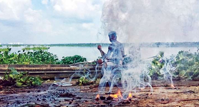 കായലില്നിന്ന് മീന് പിടിക്കുന്നതിനിടയില് വലയില് കുടുങ്ങിയ വസ്തുവിനെ കരയിലെത്തിച്ചപ്പോള് തീപിടിച്ചു. കറുത്ത് ഗോളാകൃതിയിലുള്ളതായിരുന്നു വസ്തു. വലയില്നിന്ന് പുറത്തെടുത്തപ്പോഴാണ് അതിന് തീപിടിച്ചത്. ചൈനീസ് പടക്കം പൊട്ടുന്ന ശബ്ദത്തോടെയാണ് ഈ വസ്തു കത്തിയത്. നല്ല തീയും പുകയും ഉയര്ന്നു.