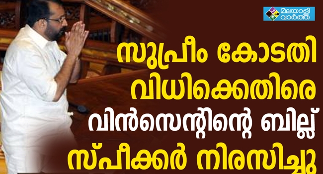 ശബരിമലയില്‍ നിയമനിര്‍മ്മാണത്തിനുള്ള സ്വകാര്യ ബില്ലിന് അനുമതിയില്ല; സുപ്രീം കോടതി വിധിയുടെ പശ്ചാത്തലത്തിൽ ബില്ലിലെ ആവശ്യങ്ങള്‍ നിലനില്‍ക്കുന്നതല്ല; വിൻസെന്റിന്റെ ബില്ലിന് ആപ്പ് വെച്ച് സ്പീക്കർ