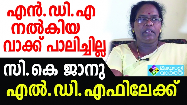 എന്ഡിഎ നല്കിയ വാക്ക് പാലിച്ചില്ല ; സികെ ജാനു നേതൃത്വം നല്കുന്ന ജനാധിപത്യ രാഷ്ട്രീയസഭ പാര്ട്ടി എല്ഡിഎഫിലേക്ക്