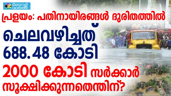 പ്രളയ ദുരിതാശ്വാസ പ്രവര്ത്തനങ്ങള്ക്കായി മുഖ്യമന്ത്രിയുടെ ദുരിതാശ്വാസ നിധിയില് 27.11.2018 (ഇതുവരെ സാലറി ചലഞ്ച് മുഖേന സമാഹരിച്ച തുകയും ഇതില് പെടും) 2683.18 കോടി രൂപ ലഭിച്ചെന്നും അതില് 688.48 കോടി രൂപ ചെലവഴിച്ചെന്നും മുഖ്യമന്ത്രി നിയമസഭയെ അറിയിച്ചു. . പ്രളയദുരിതവും പേറി പതിനായിരങ്ങള് കഴിയുമ്പോള് ബാക്കി രണ്ടായിരം കോടിയോളം രൂപ സര്ക്കാര് ഖജനാവില് സൂക്ഷിച്ചിരിക്കുകയാണെന്ന് മുഖ്യമന്ത്രി തന്നെ സമ്മതിച്ചിരിക്കുന്നു.