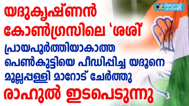 കോണ്ഗ്രസിലും പി.കെ ശശി മോഡല് പീഡനം; തൃശൂരിലെ പ്രാദേശിക കോണ്ഗ്രസ് നേതാവ് യദുകൃഷ്ണനു നേരെ പ്രായപൂര്ത്തിയാകാത്ത പെണ്കുട്ടിയുടെ പരാതി