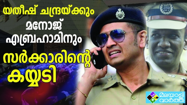 ശബരിമലയിലെ പുലിക്കുട്ടികൾക്ക് സര്ക്കാരിന്റെ കയ്യടി; യതീഷ് ചന്ദ്രയ്ക്കും മനോജ് എബ്രഹാമിനും സര്ക്കാരിന്റെ അനുമോദനപത്രം