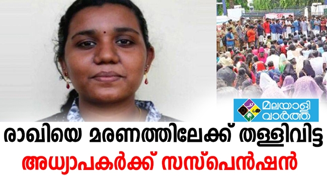 സ്വയം ഭരണ പദവിയുള്ള കൊല്ലം ഫാത്തിമ മാതാ കോളേജ് ഒന്നാം വർഷ ബിഎ ഇംഗ്ലീഷ് വിദ്യാർത്ഥിനിയായ രാഖി കൃഷ്ണ കഴിഞ്ഞ ബുധനാഴ്ചയാണ് ട്രെയിനിനു മുന്നിൽ ചാടി ആത്മഹത്യ ചെയ്തത്. കോപ്പിയടിക്കാൻ ശ്രമിച്ചു എന്നൊരോപിച്ചു പരീക്ഷാ ചുമതലയുള്ള അധ്യാപിക രാഖിയെ പരീക്ഷ ഹാളിൽ നിന്ന് പുറത്താക്കുകയും ശകാരിക്കുകയും ചെയ്തിരുന്നു. തുടർന്ന് സ്റ്റാഫ് റൂമിൽ കൊണ്ടു ചെന്ന് രാഖിയുടെ ചിത്രങ്ങൾ മൊബൈലിൽ പകർത്തിയെന്നും പരീക്ഷയിൽ നിന്ന് ഡി ബാർ ചെയ്യുമെന്ന് പറഞ്ഞു ഭീഷണിപ്പെടുത്തിയെന്നും രാഖിയുടെ സഹപാഠികൾ പറഞ്ഞിരുന്നു. അധ്യാപകർ രാഖിയുടെ അച്ഛനെ ഫോണിൽ വിളിച്ചു രാഖിയെ കുറിച്ച് മോശമായി സംസാരിച്ചിരുന്നുവെന്നും ഇതെല്ലാം സഹിക്കാതെയാണ് രാഖി ആത്മഹത്യ ചെയ്തതെന്ന് അവർ ആരോപിച്ചു രാഖിയുടെ സുഹൃത്തുക്കളും രംഗത്തെത്തിയിരുന്നു.