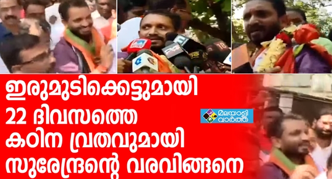 ഇരുമുടിക്കെട്ടിന് യാതൊരു കളങ്കവും വരരുത്; പാര്ട്ടി പറയുന്ന അമ്പലത്തില് ഇരുമുടികെട്ട് സൂക്ഷിക്കും: ഇരുപത്തിയൊന്ന് ദിവസത്തെ ഏകാന്ത ജയില് ജീവിതത്തിന് ശേഷം ഭക്തരുടെയും, അണികളുടെയും ഊഷ്മള വരവേല്പ്പ് ഏറ്റുവാങ്ങിയ സുരേന്ദ്രന്റെ വരവ് ഇങ്ങനെ...