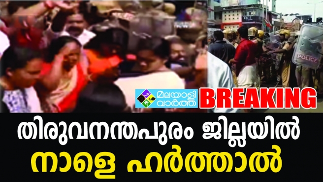 തലസ്ഥാനത്ത് നാളെ ഹർത്താൽ; സെക്രട്ടറിയേറ്റിന് മുന്നിലെ ബി.ജെ.പി മാർച്ചിലെ സംഘർഷത്തിന് പിന്നാലെ ഹർത്താലിന് ആഹ്വാനം ചെയ്ത് ബിജെപി