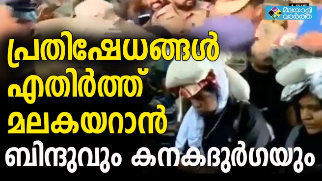 ബിന്ദു, കനകദുര്ഗ എന്നിവരാണ് മലകയറാന് എത്തിയത്. കോഴിക്കോട്, മലപ്പുറം സ്വദേശികളാണ് ഇവര്. അപ്പാച്ചിമേടില് വെച്ച് യുവതികള്ക്ക് നേരെ പ്രതിഷേധമുണ്ടായി. 42ഉം 44ഉം വയസുള്ള യുവതികളാണ് ഇവര്. പുലര്ച്ചെ മൂന്നരയ്ക്ക് ഇവര് പമ്പയിലെത്തി. പൊലീസിനെ അറിയിക്കാതെയാണ് ഇവര് പമ്പയിലെത്തിയത്. സുരക്ഷ നല്കണമെന്ന ആവശ്യം ഉന്നയിച്ചിട്ടുമില്ലായിരുന്നു. എന്നാല്, യുവതികള് ആയതിനാല് മലകയറുന്നതിന് പൊലീസ് സംരക്ഷണം നല്കുകയായിരുന്നു. ഇന്ന് പുലര്ച്ചയോടെയാണ് ശബരിമലയില് ദര്ശനത്തിനായി ഇവര് എത്തിയത്. പൊലീസ് സംരക്ഷണം ആവശ്യപ്പെടാതെയാണ് ഇവര് പമ്പയിലെത്തിയത്. പമ്പയില് വച്ച് പൊലീസുമായി വീണ്ടും സംസാരിച്ചതിനെ തുടര്ന്ന് യുവതികള് ആയതിനാല് മലകയറുന്നതിന് പൊലീസ് സംരക്ഷണം നല്കുകയായിരുന്നു. സന്നിധാനത്ത് ഇപ്പോള് പതിവായുള്ള പൊലീസ് സന്നാഹം മാത്രമാണുള്ളത്.