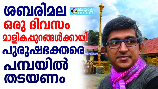 ശബരിമല ഒരു ദിവസം മാളികപ്പുറങ്ങൾക്കായി മാറ്റിവെയ്ക്കണം എന്നു ദേവസ്വം ബോർഡ് തീരുമാനിക്കണം. ആ നിർദ്ദേശം രേഖാമൂലം നിരീക്ഷക സമിതിയ്ക്കും കോടതിക്കും നൽകണം. അന്ന് പുരുഷഭക്തരെ പമ്പയിൽ തടയണം. എല്ലാവർക്കും സുഗമമായ ദർശനം സാധ്യമാക്കണം. എന്ന് അദ്ദേഹം ഫേസ്ബുക്കിലൂടെ പ്രതികരിച്ചു.