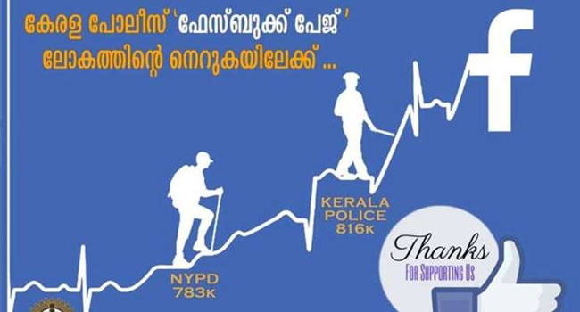 പൊതുജന ബന്ധത്തിന് പുതുവഴി തുറന്ന് വേറിട്ട സംവേദനങ്ങളിലൂടെ സോഷ്യൽ മീഡിയയിൽ തരംഗം സൃഷ്ടിച്ച കേരള പൊലീസിന്റെ ഔദ്യോഗിക ഫേസ്ബുക്ക് പേജ് ഒരു മില്യണ് ക്ലബ്ബിലേക്ക്.