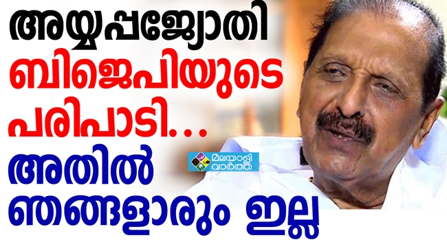അത് ബിജെപിയുടെ പരിപാടിയാണ്, അതില് തങ്ങളാരും ഇല്ല; അയ്യപ്പ ജ്യോതി ബിജെപിയുടെ പരിപാടിയാണ് അതുകൊണ്ട് അതില് തങ്ങളാരും ഇല്ല എന്ന് കേരളാ കോൺഗ്രസ്(ബി) നേതാവ് ആർ ബാലകൃഷ്ണപിള്ള