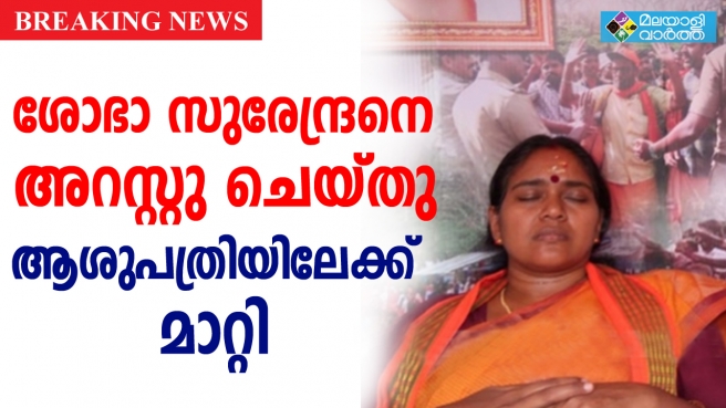 ശബരിമല വിഷയത്തില് പത്തു ദിവസമായി നിരാഹാര സമരം നടത്തുന്ന ബി.ജെ.പി സംസ്ഥാന ജനറല് സെക്രട്ടറി ശോഭാ സുരേന്ദ്രനെ അറസ്റ്റു ചെയ്ത് ആശുപത്രിയിലേക്ക് മാറ്റി. അവരുടെ ആരോഗ്യനില വഷളായതിനെ തുടര്ന്നാണിത്. ആശുപത്രിയിലേക്ക് ഉടന് മാറ്റണമെന്ന് ഡോക്ടര്മാര് നിര്ദേശിച്ചെങ്കിലും വഴങ്ങാതിരുന്നതിനെ തുടര്ന്നാണ് അറസ്റ്റുചെയ്ത് നീക്കിയത്. സി.കെ പത്മനാഭനാണ് ശോഭ സുരേന്ദ്രനുമുമ്പ് നിരാഹാര സമരം നടത്തിവന്നത്. അദ്ദേഹത്തെ ആശുപത്രിയിലേക്ക് മാറ്റിയശേഷമാണ് ശോഭ സുരേന്ദ്രന് സമരം തുടങ്ങിയത്. പകരം ബിജെപി വൈസ് പ്രസിഡന്റ് എന് ശിവരാജന് നിരാഹാര സമരം ഏറ്റെടുത്തു.