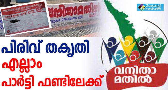 നവോഥാനത്തിന്റെ പേര് പറഞ്ഞു നടത്തുന്ന വനിതാമതിലിന്റെ പേരിൽ വ്യാപക പിരിവ്; ഈ തുക പാർട്ടി ഫണ്ടിലേക്ക് ഒഴുകുന്നെന്ന് റിപ്പോർട്ട്