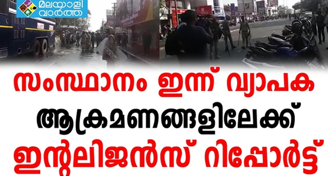 സംസ്ഥാനം ഇന്ന് വ്യാപക ആക്രമണങ്ങളിലേക്കെന്നു ഇന്റലിജൻസ് റിപ്പോർട്ട്