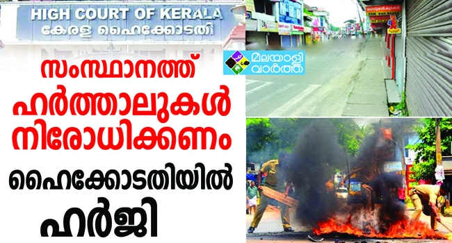 ഹര്ത്താലുകള് നിരോധിക്കണം ; സംസ്ഥാനത്ത് ഹര്ത്താലുകള് നിരോധിക്കണമെന്ന് ആവശ്യപ്പെട്ട് ഹൈക്കോടതിയില് ഹര്ജി