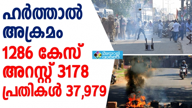 ഹര്ത്താലുമായി ബന്ധപ്പെട്ട് ഇതുവരെയുളള കണക്കനുസരിച്ച് സംസ്ഥാനത്ത് 1286 കേസുകള് രജിസ്റ്റര് ചെയ്തു, 37,979 പ്രതികള്, 487 പേര് റിമാന്റില്, 2691 പേര്ക്ക് ജാമ്യം ലഭിച്ചു