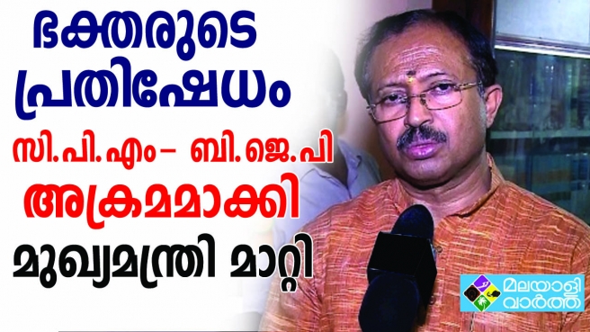 ശബരിമലയിലെ യുവതി പ്രവേശനത്തില് അയ്യപ്പ ഭക്തര്ക്കുള്ള പ്രതിഷേധം പുറത്തുവരാതിരിക്കാനുള്ള സി.പി.എമ്മിന്റെയും സര്ക്കാരിന്റെയും അജണ്ടയാണ് അക്രമങ്ങളിലൂടെ നടപ്പാക്കപ്പെട്ടത്. ഇത് മനസിലാക്കി അയ്യപ്പ ഭക്തരുടെ താല്പര്യം സംരക്ഷിക്കുന്നതിനായി ബി.ജെ.പിയുടേയും ആര്.എസ്.എസിന്റേയും പ്രവര്ത്തകര് നിലകൊള്ളേണ്ടതുണ്ട്