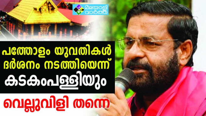 കനകദുര്ഗയും ബിന്ദുവും ശശികലയും മലകയറിയത് കൂടാതെ പത്തോളം യുവതികള് ദര്ശനം നടത്തിയെന്ന് ദേവസ്വം മന്ത്രി കടകംപള്ളി സുരേന്ദ്രന് വെളിപ്പെടുത്തി, ആര്എസ്എസിന്റെ നേതൃത്വത്തില് ശബരിമല കര്മസമിതി പ്രവര്ത്തകര് എത്ര ബഹളം വച്ചിട്ടും കാര്യമില്ലെന്നും മന്ത്രി