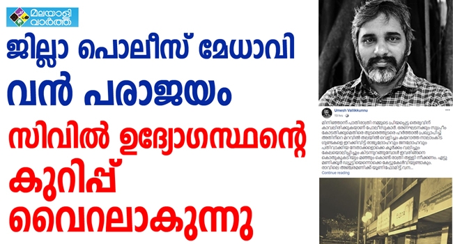 അക്രമമുണ്ടായ ശേഷം അറസ്റ്റ് ചെയ്യുന്നതല്ല, അക്രമത്തെ തടയുന്നതാണ് പൊലീസിങ് എന്ന് ഒരു ഐപിഎസ് ഉദ്യോഗസ്ഥന് അറിയേണ്ടതല്ലേ എന്നും. സര്ക്കാരും ഡിജിപിയും നിര്ദ്ദേശിച്ച പ്രകാരം കടകള്ക്കു സുരക്ഷ നല്കാനുള്ള എല്ലാ സാഹചര്യവും ഉണ്ടായിരുന്നിട്ടും പൊലീസിന്റെ വില കളയുന്ന അവസ്ഥയുണ്ടാക്കിയത് അദ്ദേഹം വിമര്ശിക്കുന്നു. അത് അറിവില്ലായ്മ കൊണ്ടോ അതോ മറ്റെന്തെങ്കിലും താല്പര്യങ്ങള് കൊണ്ടാണോ ഉണ്ടായതെന്നും ഉമേഷ് ചോദിക്കുന്നു. സമൂഹ മാധ്യമത്തിലിട്ട കുറിപ്പിലൂടെയാണ് ഉദ്യോഗസ്ഥന് വിമര്ശനം ഉന്നയിച്ചിരിക്കുന്നത്.