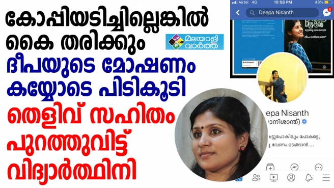 വീണ്ടും കോപ്പിയടിച്ച് ദീപാ നിഷാന്ത്; തെളിവ് സഹിതം പുറത്തുവിട്ട് വിദ്യാർത്ഥിനി- വിമർശനങ്ങൾ ഉയർന്നതോടെ തെളിവ് നശിപ്പിക്കലും