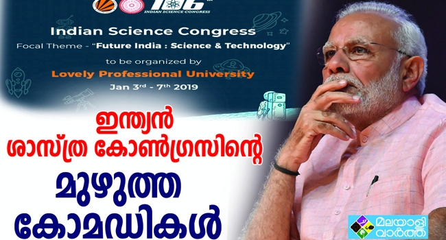 പഞ്ചാബിലെ ഫഗ്വാരയിലുള്ള ലവ്ലി പ്രൊഫഷണല് സർവകലാശാലയില് വച്ചു നടന്ന 106ാമത് ഇന്ത്യന് ശാസ്ത്ര കോണ്ഗ്രസിന്റെ വിശേഷങ്ങള് കേള്ക്കാതിരിക്കരുത്. അവിടെ അവതരിപ്പിച്ച ശാസ്ത്രസിദ്ധാന്തങ്ങള് നിങ്ങളുടെ തല പുകയ്ക്കുകയില്ല. പകരം നിങ്ങളെ കുടുകുടാ ചിരിപ്പിക്കും. നമ്മുടെ നാടിന്റെ ഗതിയോര്ത്ത് തലയില് കയ് വച്ചുപോകും.