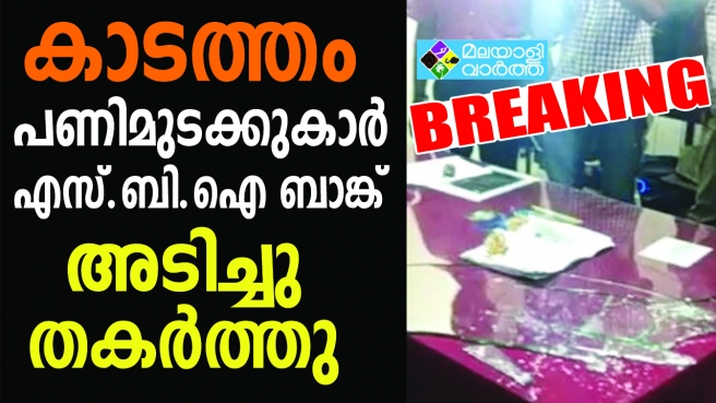ഭരണ സിരാകേന്ദ്രത്തിന് മുന്നിൽ പണിമുടക്കിനിടെ പ്രവർത്തിച്ച എസ് ബി ഐ ഓഫിസ് അടിച്ച് തകർത്ത് പതിനഞ്ചോളം വരുന്ന സമരാനുകൂലി സംഘത്തിന്റെ അഴിഞ്ഞാട്ടം