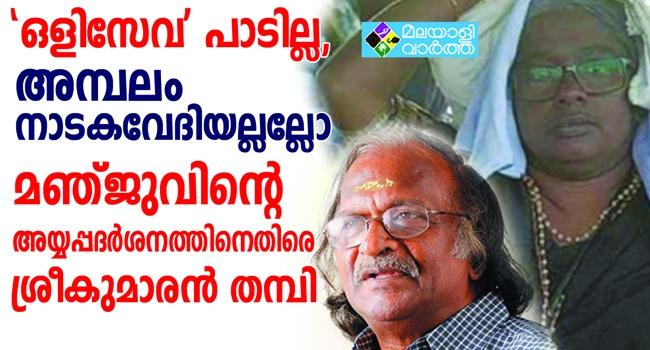 അമ്പലം നാടകവേദിയല്ലല്ലോ.ആൾമാറാട്ടം ക്രിമിനൽ കുറ്റമാണ്; കൊല്ലം ചാത്തന്നൂര് സ്വദേശി എസ്.പി മഞ്ജുവിന്റെ അയ്യപ്പദർശനത്തെ വിമര്ശിച്ച് സംവിധായകനും ഗാനരചയിതാവുമായ ശ്രീകുമാരന് തമ്പി രംഗത്ത്