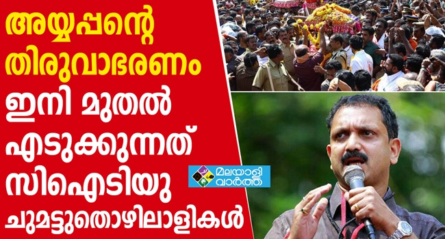 പോലീസുകാര്ക്ക് പുറമെ പ്രത്യേക തിരിച്ചറിയല് കാര്ഡുള്ളവര്ക്കെ തിരുവാഭരണ ഘോഷയെ അനുഗമിക്കാവു എന്നാണ് പോലീസ് നിര്ദ്ദേശം. ഇതിനെതിരെയാണ് സുരേന്ദ്രന് രംഗത്ത് വന്നിരിക്കുന്നത്. അയ്യപ്പന്റെ തിരുവാഭരണം ഇനി മുതല് സിഐടിയു ചുമട്ടുതൊഴിലാളികള് എടുക്കുമെന്നായിരുന്നു ഇതിനെതിരായ സുരേന്ദ്രന്റെ വാക്കുകള്.