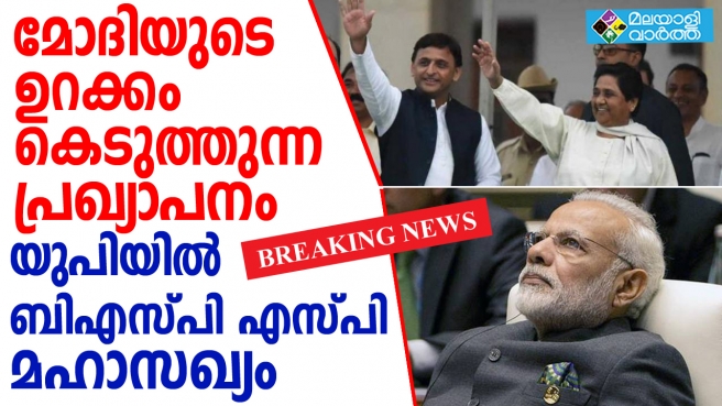 മോദിയുടെ ഉറക്കം കെടുത്തുന്ന പ്രഖ്യാപനം ; യുപിയില് ബിഎസ്പി-എസ്പി മഹാസഖ്യം; പ്രഖ്യാപനം നടത്തിയത് മായാവതിയും അഖിലേഷ് യാദവും ചേര്ന്ന്; മായാവതിയും അഖിലേഷ് യാദവും കഴിഞ്ഞദിവസം നടത്തിയ മാരത്തണ് ചര്ച്ചകള്ക്കൊടുവിലാണ് മഹാസഖ്യ രൂപീകരണത്തിലും സീറ്റ് വിഭജനത്തിലും അന്തിമ തീരുമാനമായത്
