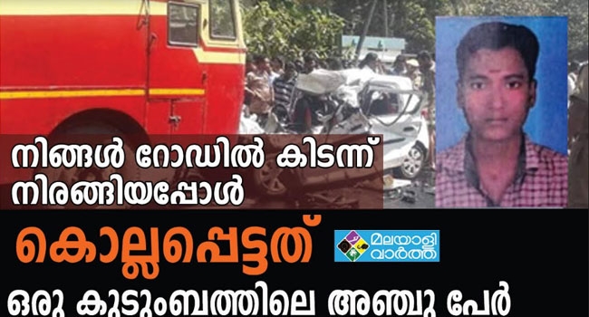 ഓവര്ടേക്ക് ചെയ്യുന്നതിനിടെ കഴിഞ്ഞ ദിവസം എംസി റോഡില് കെഎസ്ആര്ടിസി ഫാസ്റ്റ് പാസഞ്ചറും കാറും കൂട്ടിയിടിച്ച് കാറിലുണ്ടായ കുടുംബത്തിലെ അഞ്ചു പേരുള്പ്പെടെ ആറ് പേരാണ് ദാരുണമായി കൊല്ലപ്പെട്ടത്.