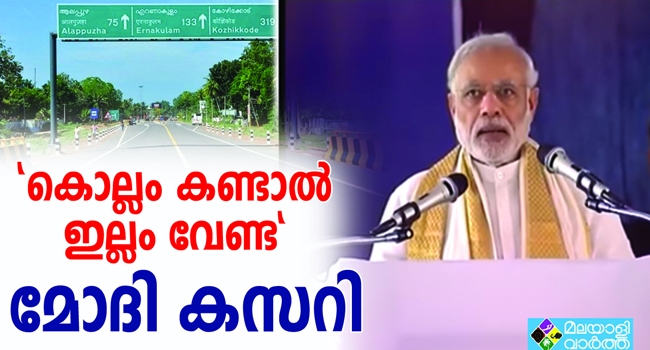 കൊല്ലത്തെ വേദിയിൽ മലയാളത്തില് ജനങ്ങളെ അഭിസംബോധന ചെയ്തുകൊണ്ടാണ് പ്രധാനമന്ത്രി പ്രസംഗം തുടങ്ങിയത്. കേരളത്തിലെ പ്രിയപ്പെട്ട സഹോദരി സഹോദരന്മാരെ .. ഞാന് നിങ്ങളെ സ്നേഹിക്കുന്നു .. ബഹുമാനിക്കുന്നു ... ദൈവത്തിന്റെ സ്വന്തം നാട് സന്ദര്ശിക്കാന് കഴിഞ്ഞതിലൂടെ താന് അനുഗ്രഹീതനായി.